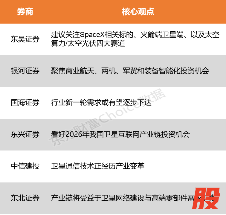东吴证券:建议关注SpaceX相关标的、火箭端卫星端、以及太空算力/太空光伏四大赛道