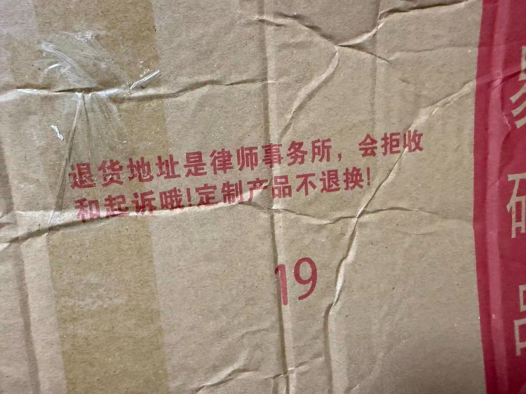 消费者收到的快递包装上印有“退货地址是律师事务所”的字样。 网络图