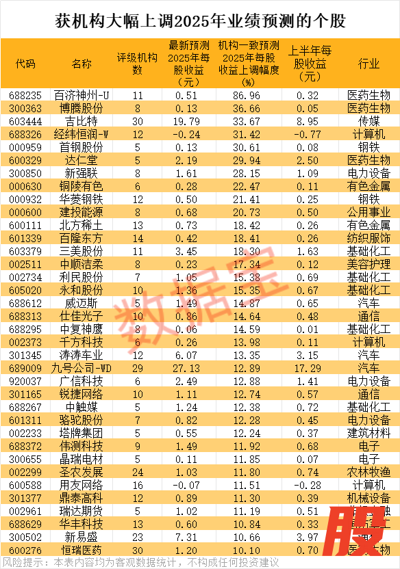 36股获机构大幅上调2025年业绩预测36股获机构大幅上调2025年业绩预测