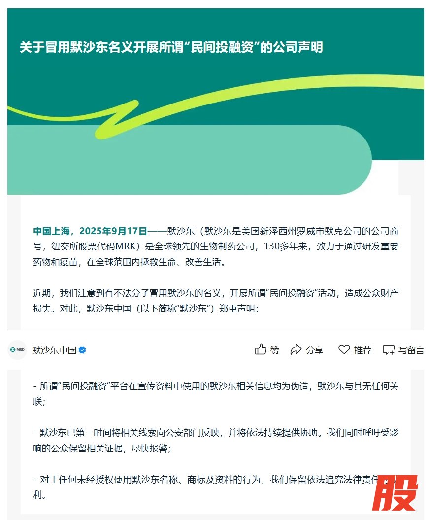 默沙东中国:未曾也不会在任何市场以任何形式开展面向公众的民间投融资类活动默沙东中国:未曾也不会在任何市场以任何形式开展面向公众的民间投融资类活动